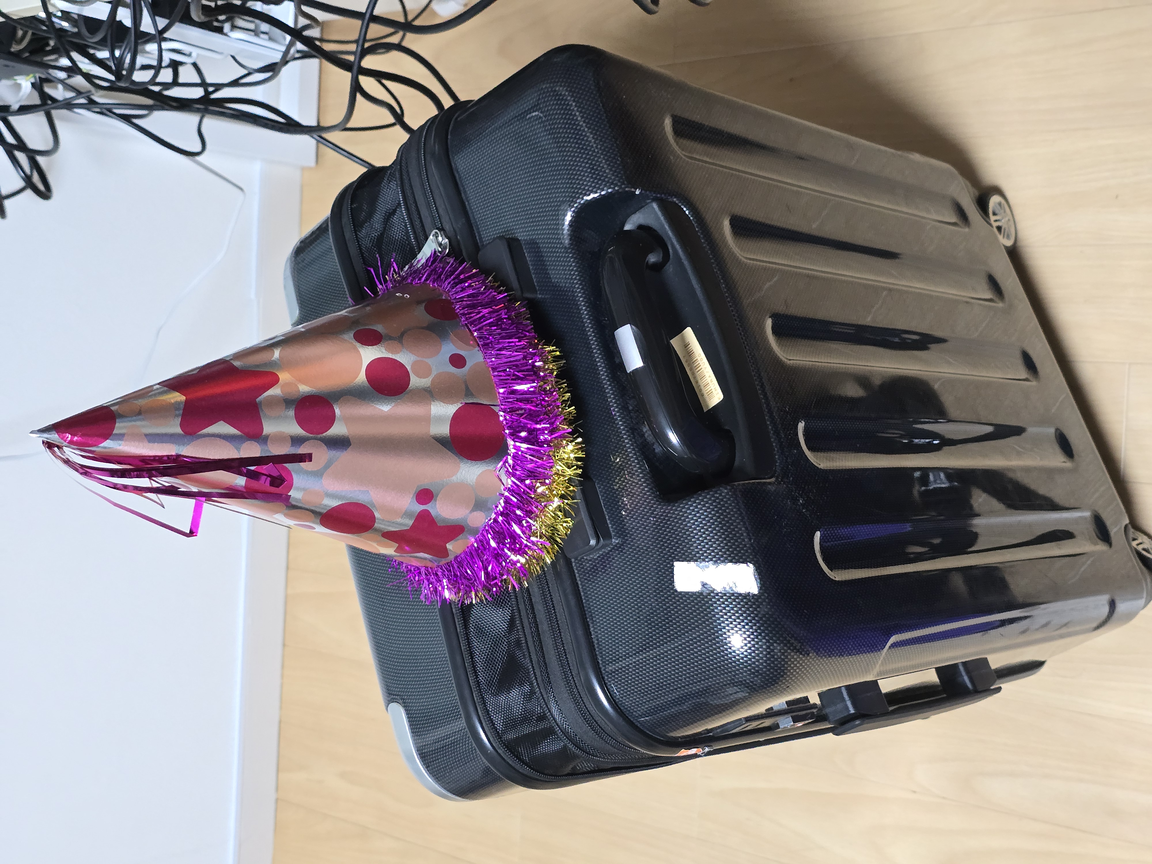 荷物圧迫の原因であるパーティ帽子